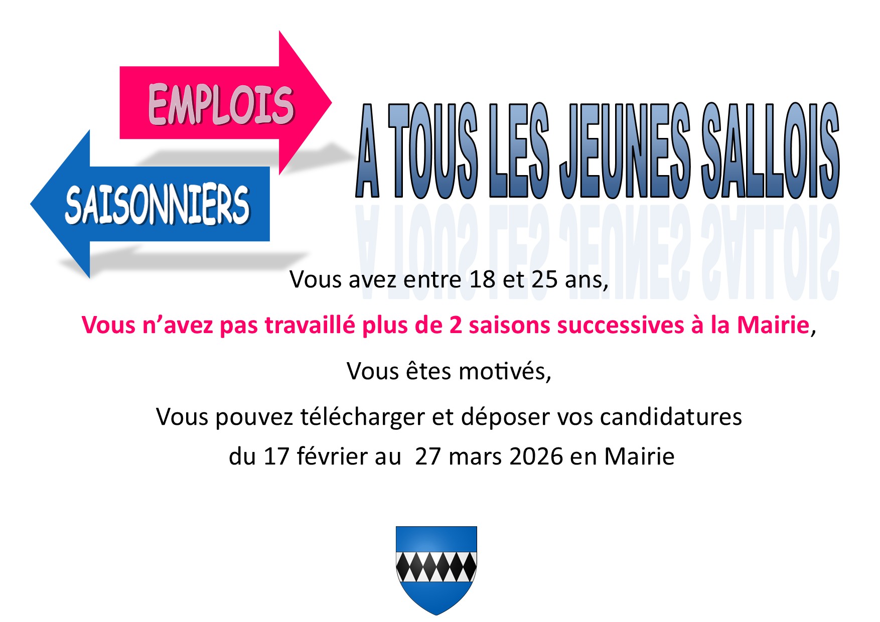 Vous pouvez dès à présent déposer vos candidatures en Mairie.